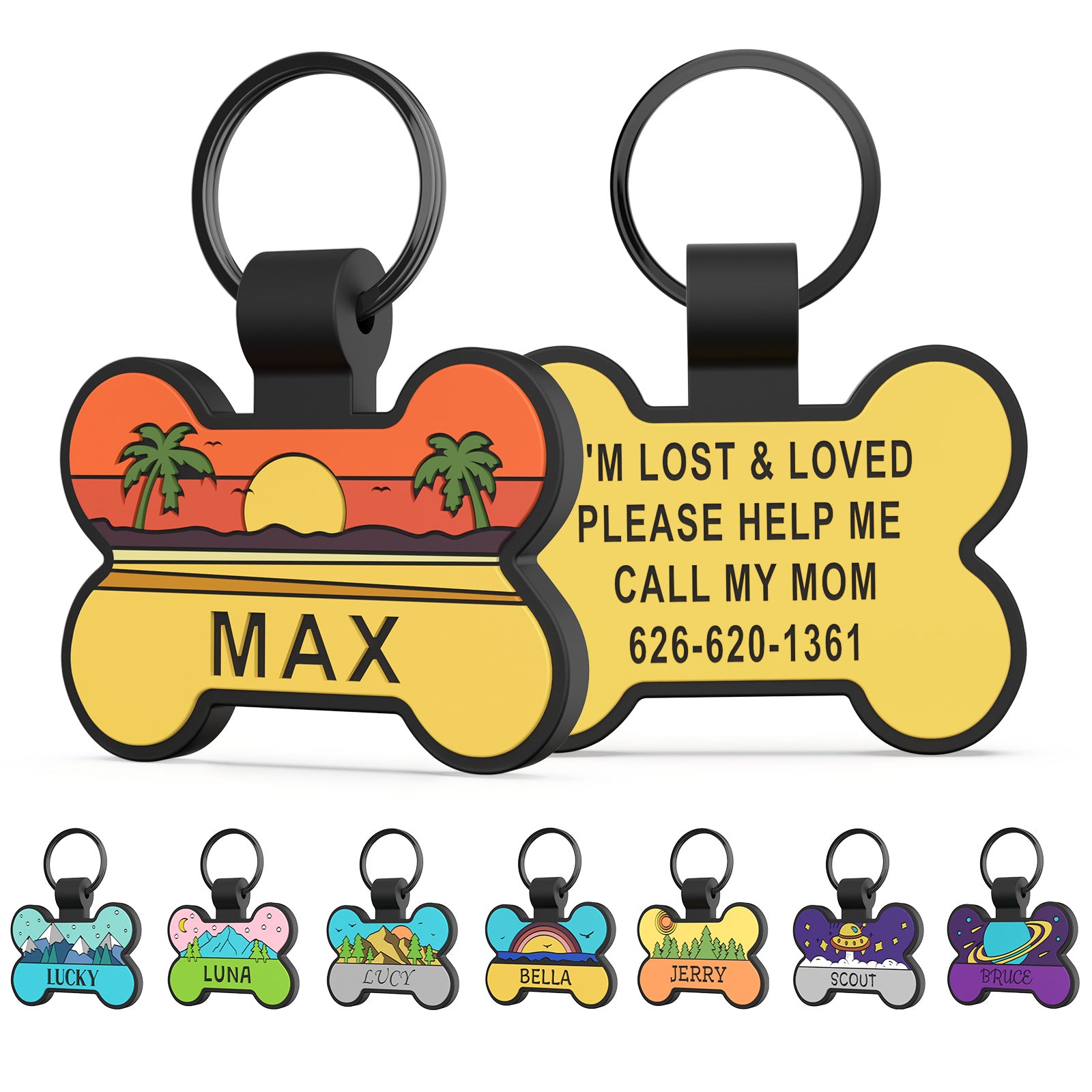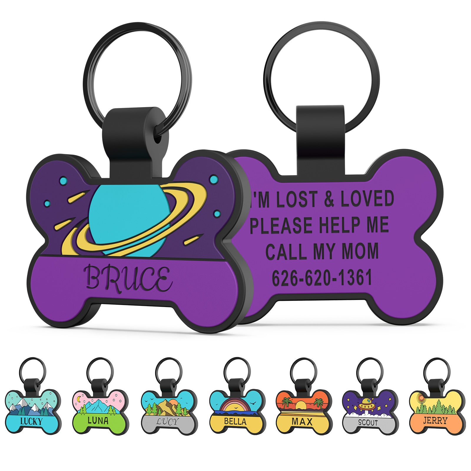 Enhance your pet’s safety and style with this sophisticated, silent engraved dog tag. Crafted from durable gray silicone in a bone shape, it offers personalized identification without noise. Perfect for pets sensitive to jingling tags, this sleek design ensures comfort while clearly displaying your pet’s important information. A subtle yet essential accessory for everyday wear.
