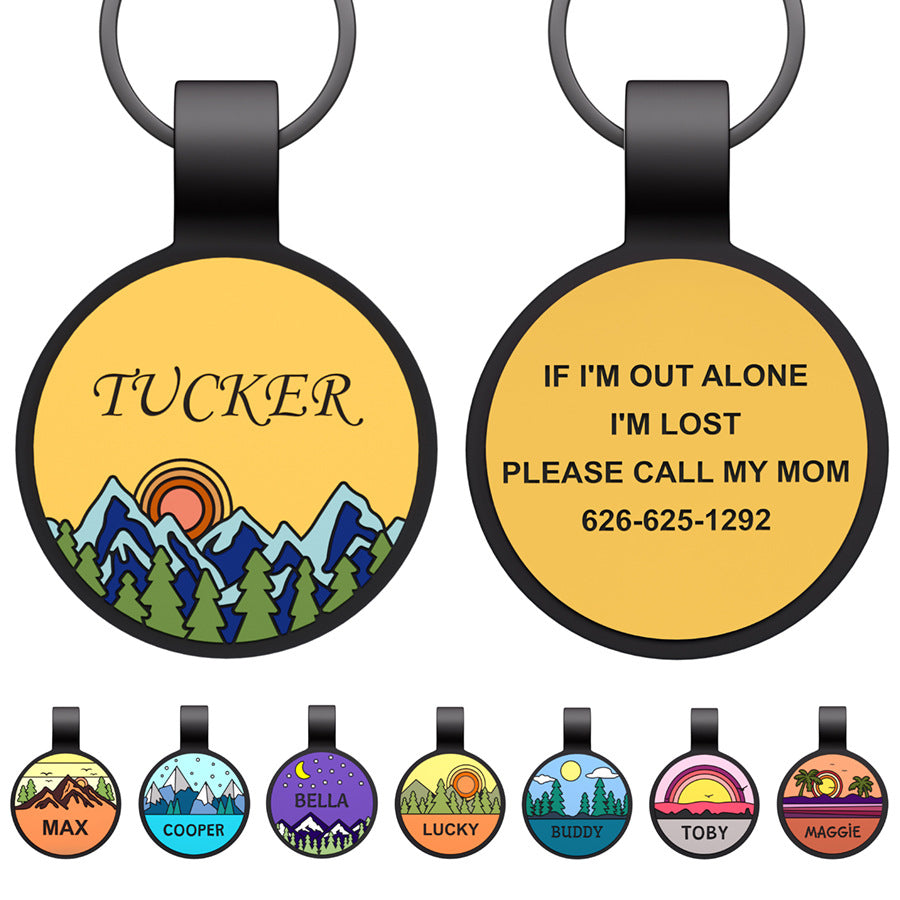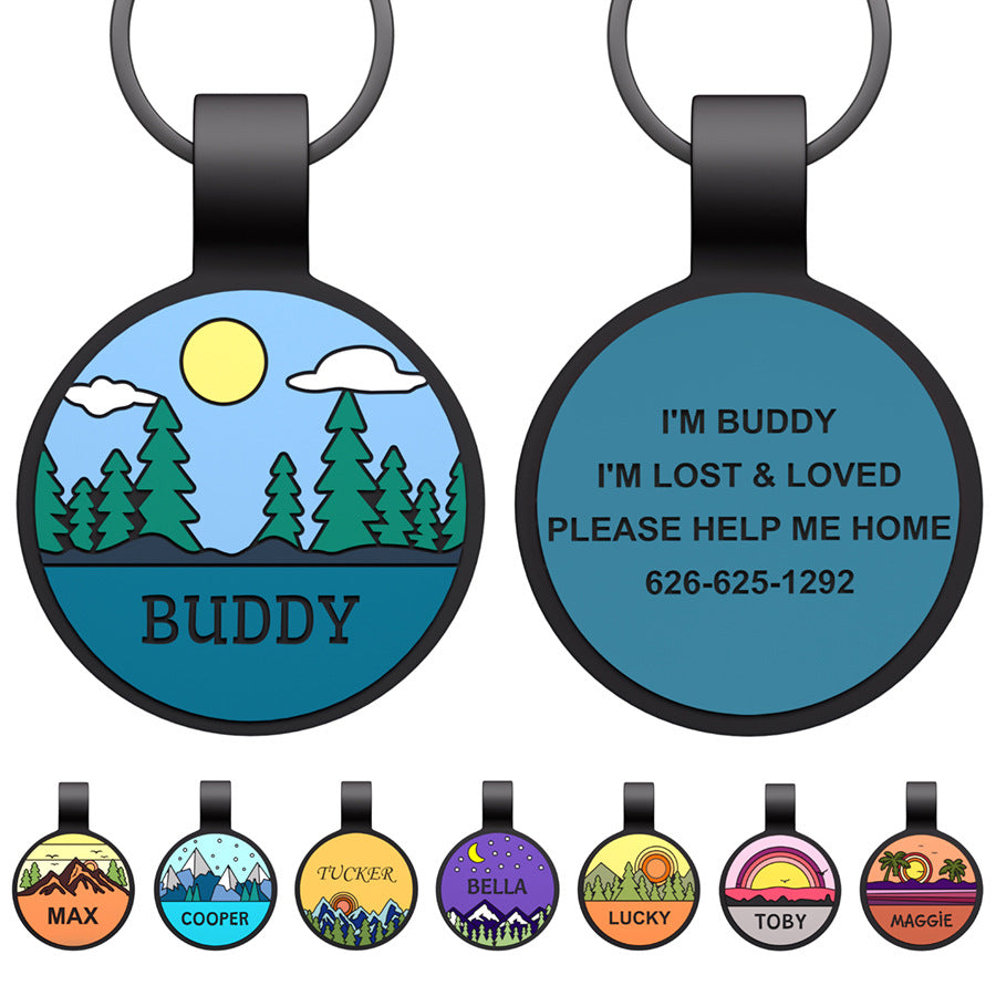 Silent Engraved Dog Tag Personalized Silicone Pet ID Name Tag Round Moon